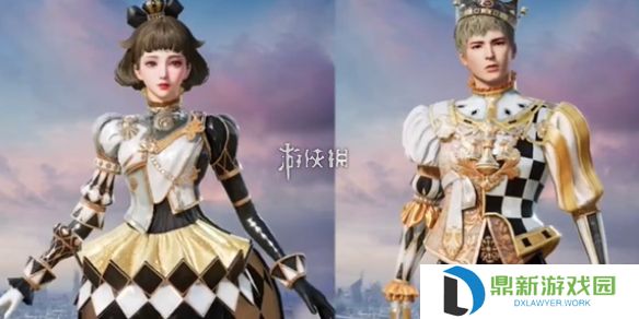 1、套装外观:棋盘冕主套装共有男女两款,其中女款为裙子,男款则是上衣和裤子。