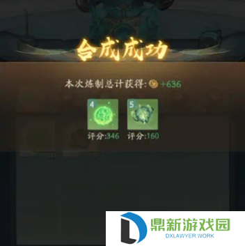 3、获得奖励:每次合成均会获得合成后药材评分相同的药师通宝,合成时同级别的药材数量越多则丹药的评分将会越高。